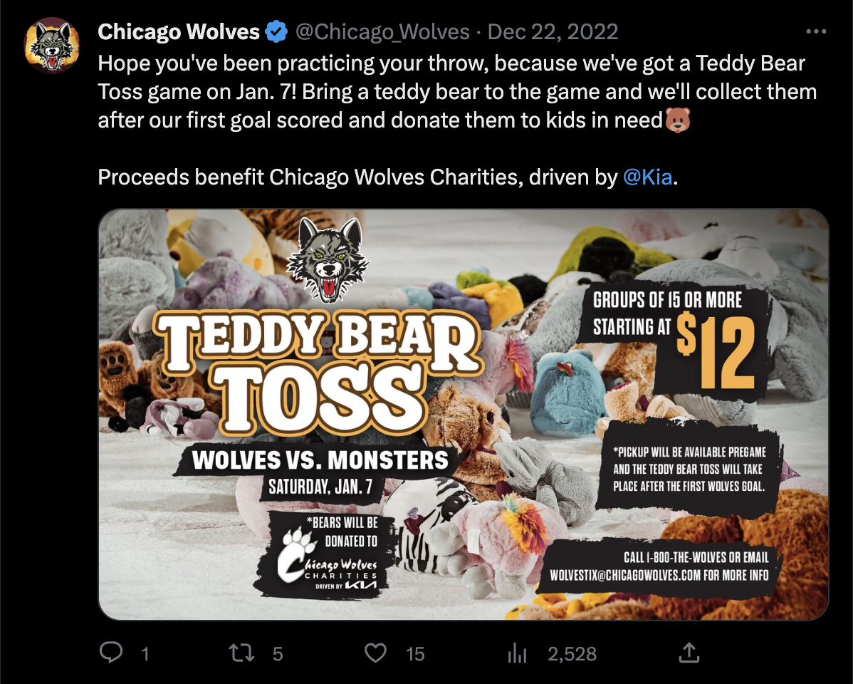 Design Strategy: Develop an inviting graphic system both print and digital encompassing the charitable and interactive Teddy Bear Toss Event that will spark engagement across social media and game-day operations.